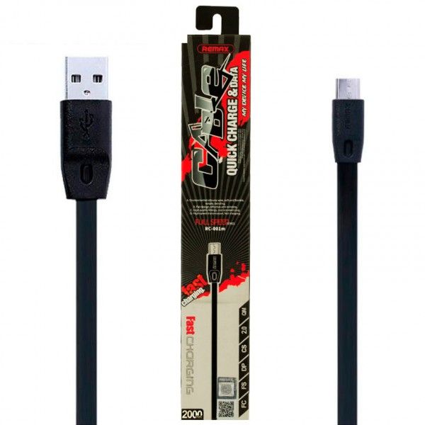 Кабель черный Remax RC-001m USB to MicroUSB 2м