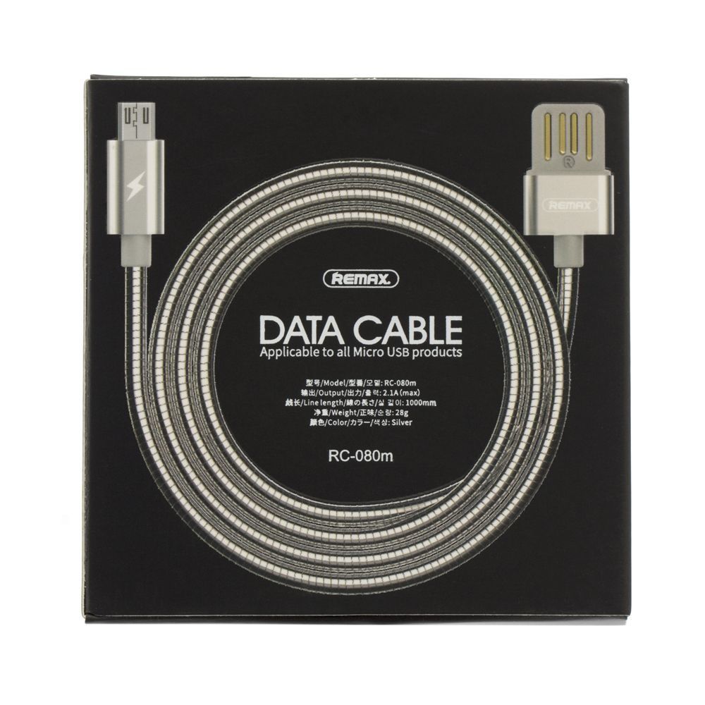 Серебристый USB к MicroUSB кабель Remax RC-080m в металлической оплетке 1m