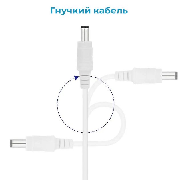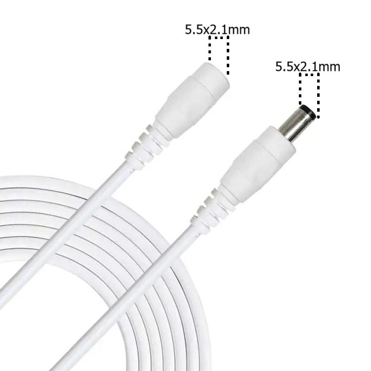 Кабель-удлинитель питания DC12V 5,5*2,1 мм разъем папа-мама для роутера, белого цвета.