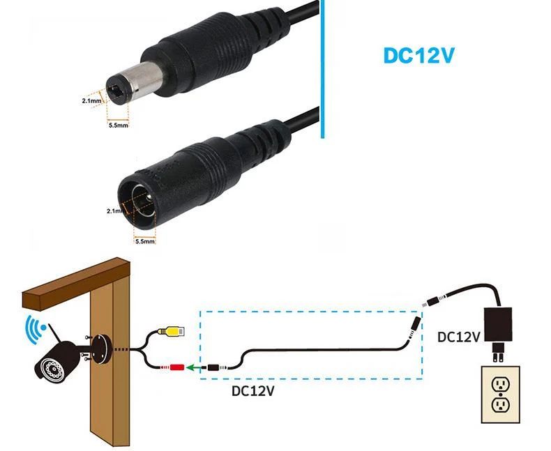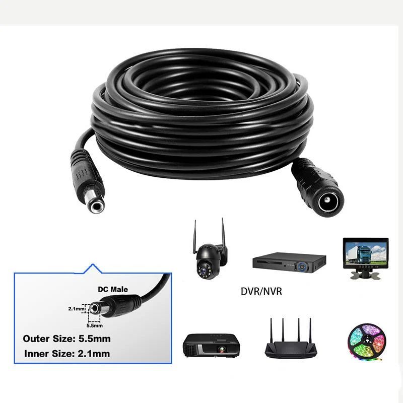 Этот кабель-удлинитель питания 12В (папа-мама) может использоваться для удлинения питания для видеонаблюдения, роутера, ONU и других устройств с разъемами 5,5*2,1 мм.