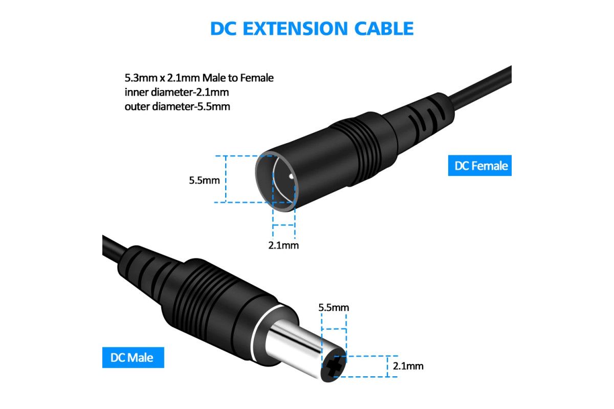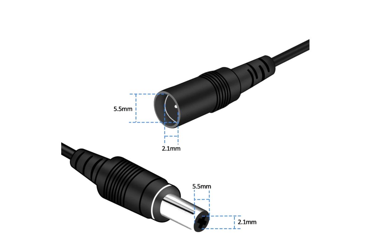 Этот кабель удлинитель питания черного цвета подходит для безперебойников, роутеров и медиаконвертеров DC1018P, DC1036P с разъемами и штекерами 5,5*2,1 мм