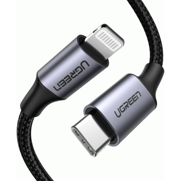 Ugreen US304 USB-C to Lightning M/M Алюминиевый Плетеный Кабель 2m Черный (UGR-60761)