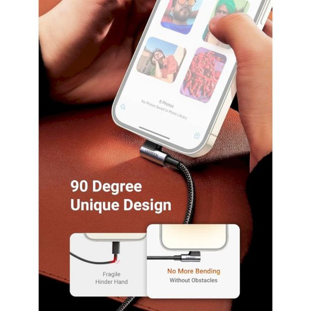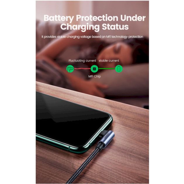 Кабель UGREEN US305 USB-C to Lightning Angled Cable Aluminum Shell Braided 1m(UGR-60763)