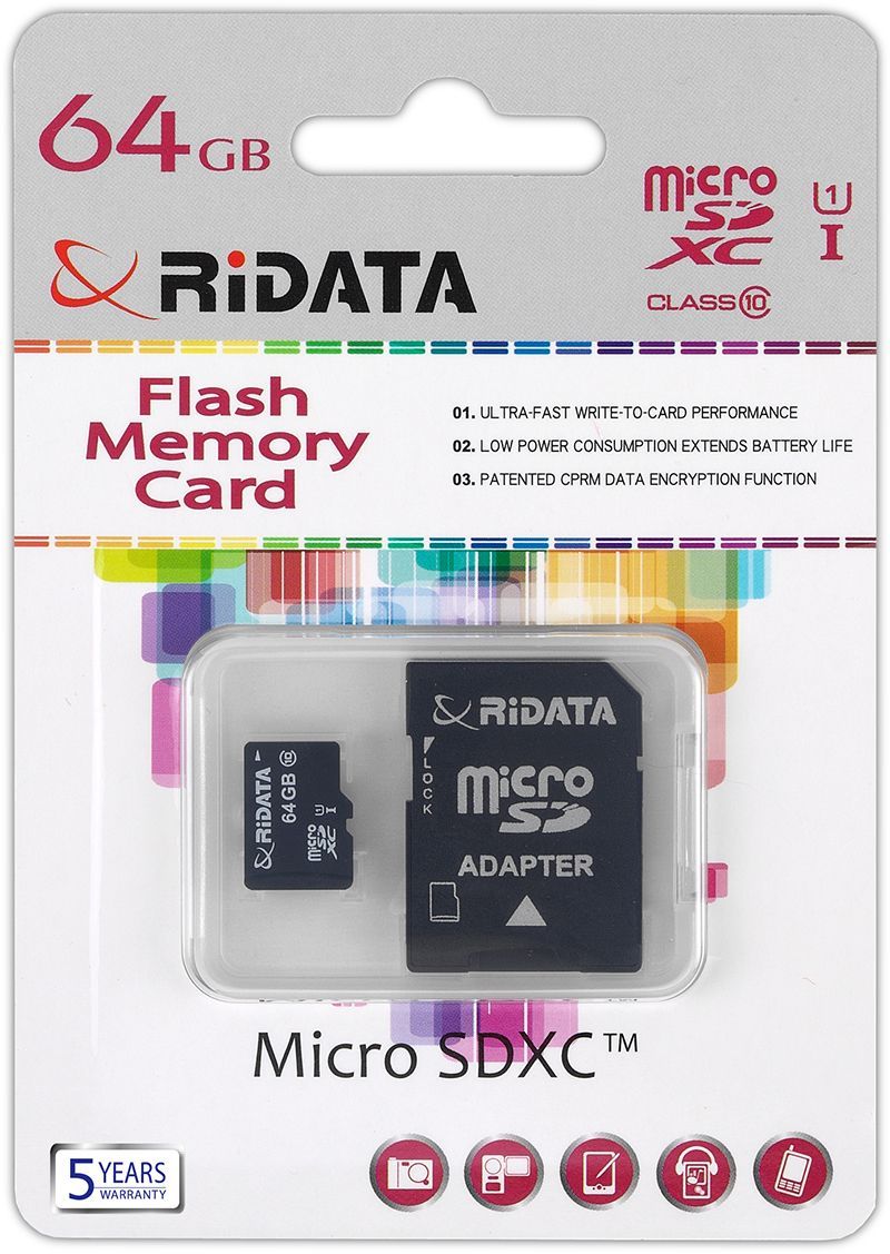 Карта памяти RiDATA microSDXC 64GB Class 10 UHS-I + SD адаптер