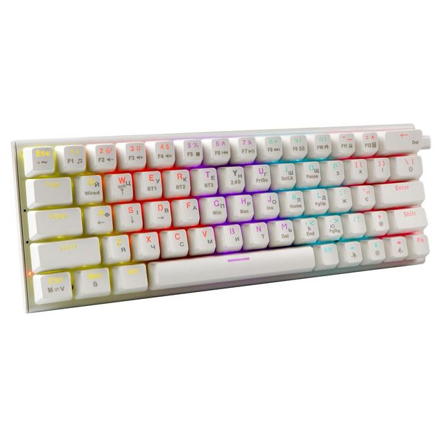 Клавиатура имеет компактный форм-фактор 60% с 63 клавишами, что делает её удобной для использования даже в ограниченных пространствах, без потери функциональности.