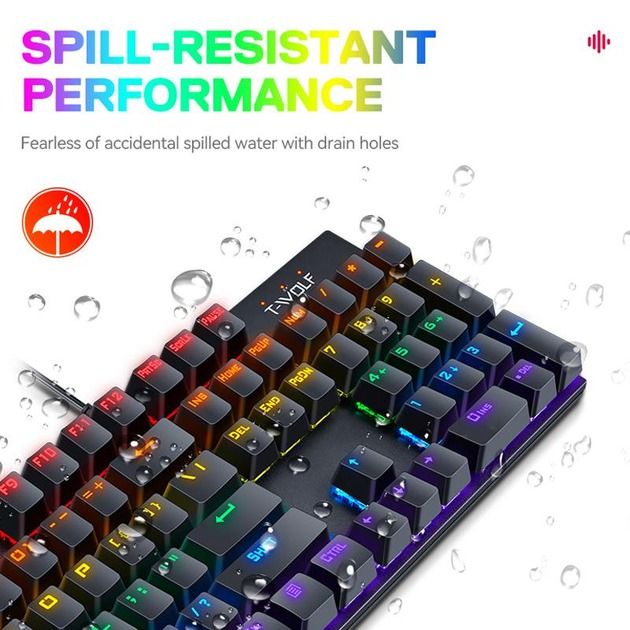 - Клавиатура оснащена высококачественными механическими переключателями Blue Switch, обеспечивающими четкую тактильную обратную связь и ярко выраженный звуковой клик при нажатии. Эти переключатели известны своей надежностью и предназначены для обеспечения до 50 миллионов нажатий, что делает T-Wolf T17 надежным выбором для серьезных геймеров и профессионалов.