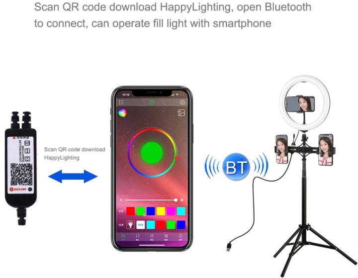 Многофункциональная кольцевая лампа с RGBW-подсветкой и регулируемым штативом – отличное решение для профессионального и любительского контента. Подходит для съемки видео, прямых трансляций, макияжа и фотосессий.