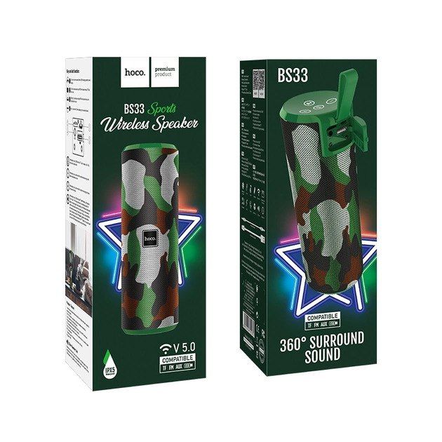 Колонка HOCO BS33 Voice sports wireless speaker|AUX, TF CARD, FM, USB| Camouflage Green
