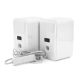 Корпуса колонок выполнены в классической форме со скругленными ребрами и изготовлены из прочного пластика. Противоскользящие накладки на нижних панелях гарантируют их устойчивость на любой поверхности, а решетчатая структура передних панелей способствует беспрепятственному распространению звука.