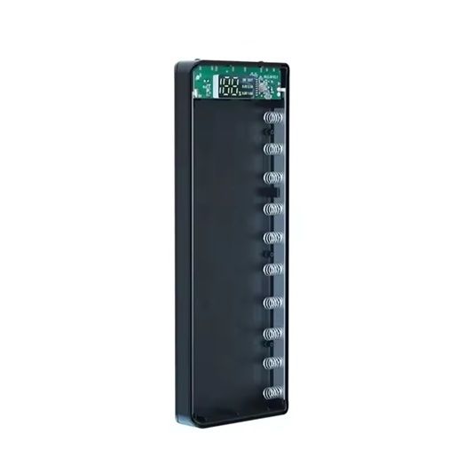 Этот корпус-кейс предназначен для самостоятельной сборки портативного повербанка с поддержкой до 10 аккумуляторов 18650 (flat top, без выступающего контакта). Имеет зарядку через порты Type-C и microUSB и разрядку через 2 порта USB, обеспечивая удобное питание различных мобильных устройств.