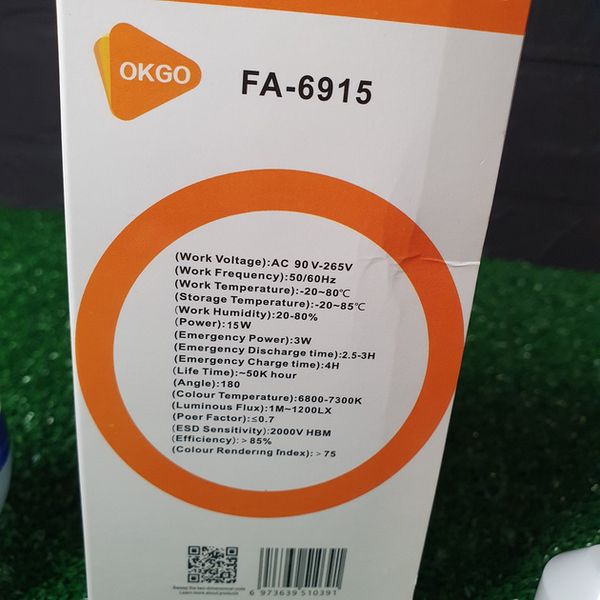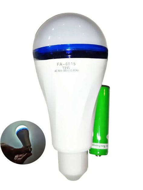 Лампа аккумуляторная FA-6915 светодиодная E27 15 W 6800 К Автономная аварийная, со сменным аккумулятором 18650 в комплекте.