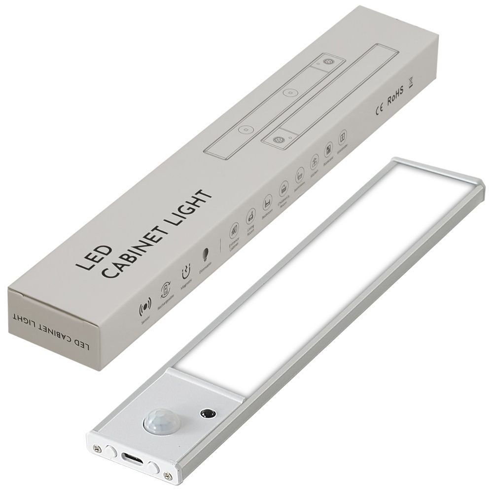20 см LED светильник 20-2S с датчиком движения и освещенности, аккумулятором, пультом ДУ, алюминиевый корпус, 2W Silver