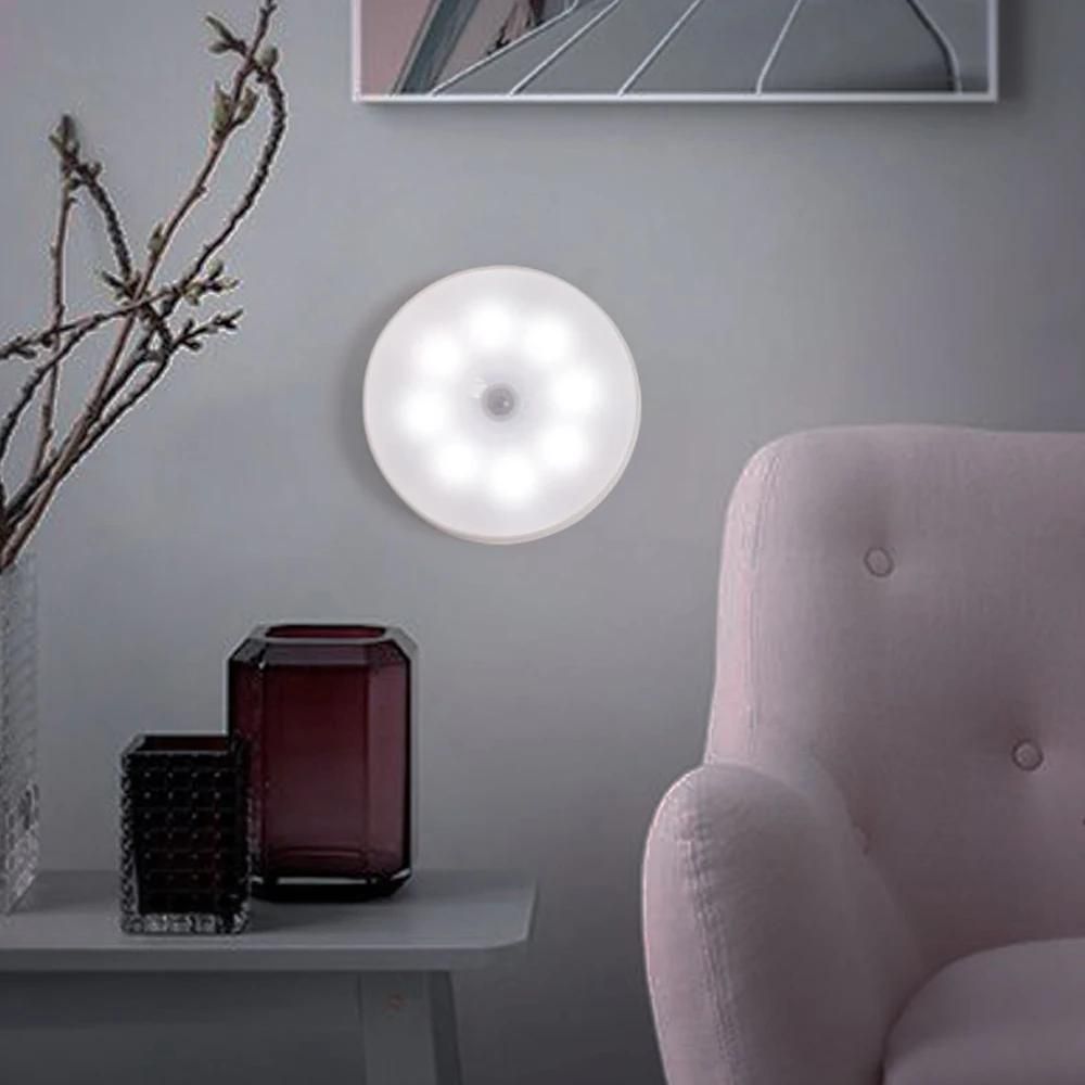 LED светильник круглый портативный автоматический |Холодный свет, датчик движения и освещения, магнит| 85mm, 1режим, microUSB White