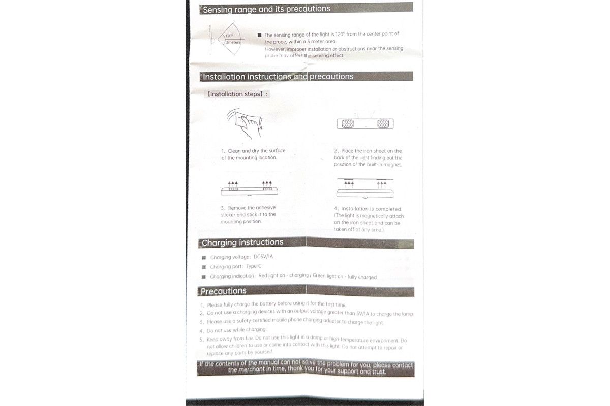 Беспроводной светодиодный ночник имеет угол срабатывания датчика движения 120°, дистанция до 3 метров.