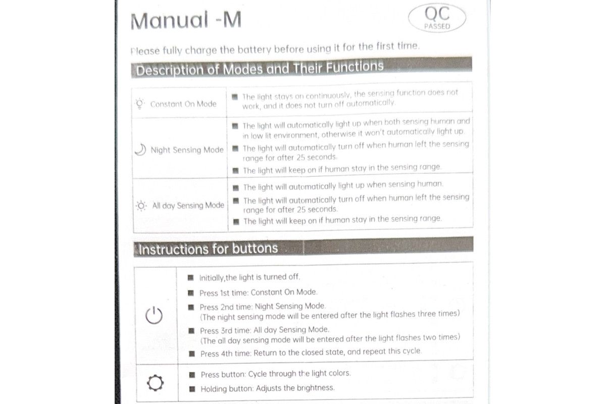 Короткое нажатие на кнопку Питание 3 раз -> дневной режим, свет включается всегда по датчику движения и в темноте и при свете.