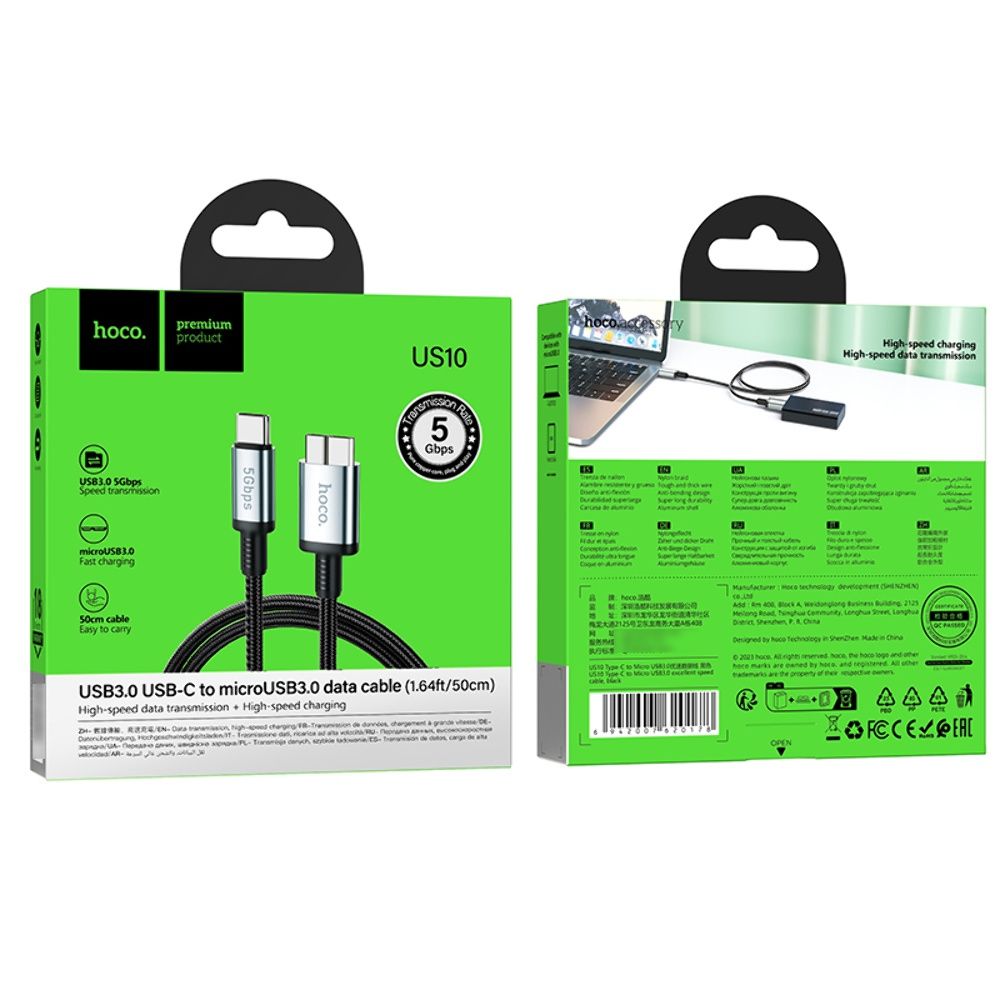 Это высокоскоростной кабель для быстрой и стабильной передачи данных между устройствами с разъемами Type-C и Micro USB 3.0. Благодаря прочной конструкции и поддержке скорости передачи данных до 5 Гбит/с, он идеально подходит для работы с мобильными жесткими дисками, компьютерами и другими совместимыми устройствами.