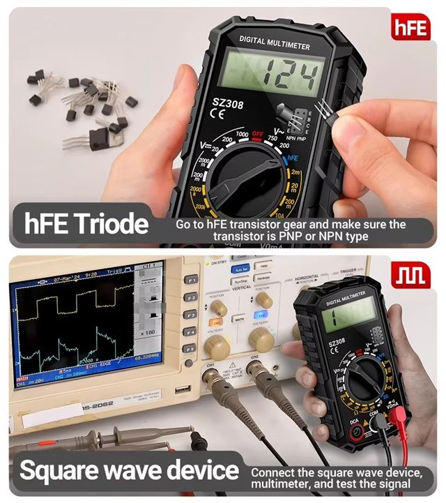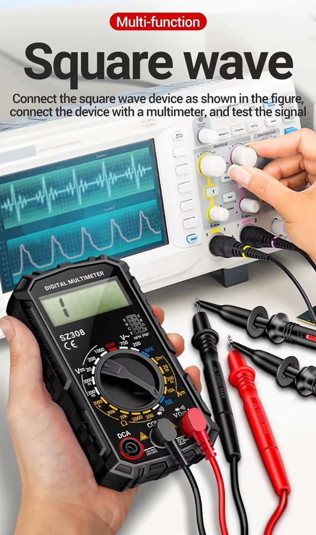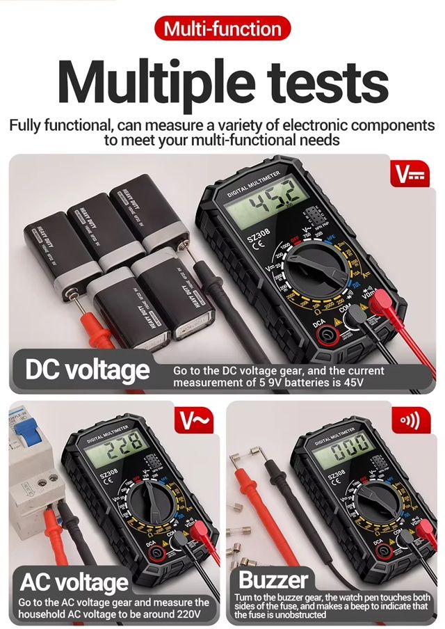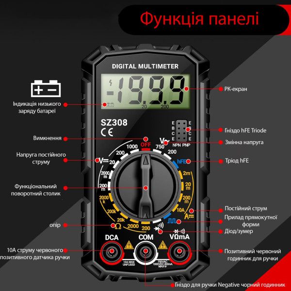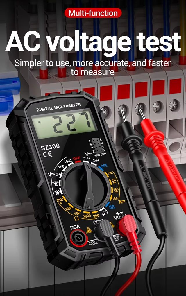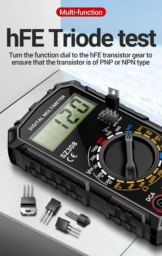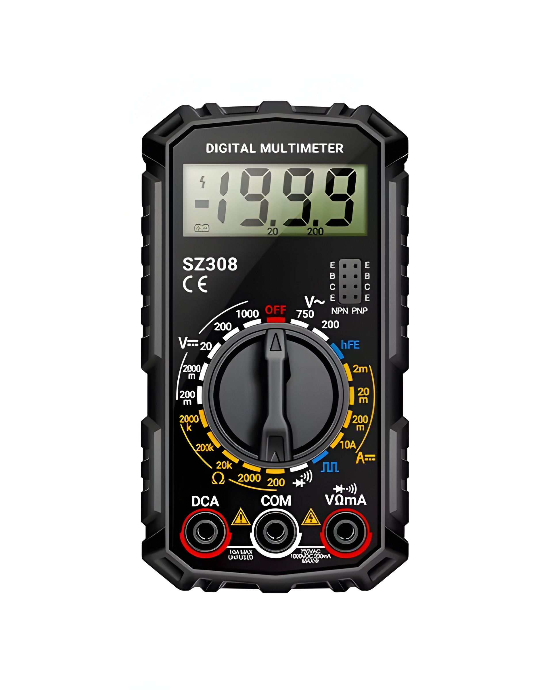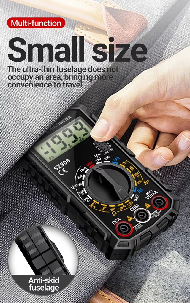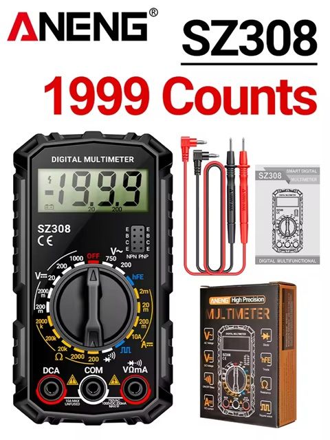 Компактный и многофункциональный цифровой мультиметр Aneng SZ308 предназначен для измерения постоянного и переменного напряжения, силы постоянного тока, сопротивления, проверки диодов и транзисторов, а также прозвонки цепей. Устройство отличается высокой точностью, удобством в использовании и компактными размерами, что делает его отличным выбором для домашнего и профессионального применения.
