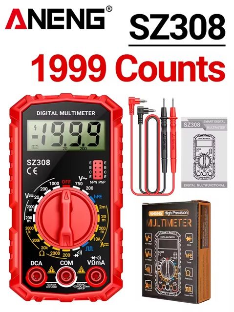 Компактный и многофункциональный цифровой мультиметр Aneng SZ308 предназначен для измерения постоянного и переменного напряжения, силы постоянного тока, сопротивления, проверки диодов и транзисторов, а также прозвонки цепей. Устройство отличается высокой точностью, удобством в использовании и компактными размерами, что делает его отличным выбором для домашнего и профессионального применения.