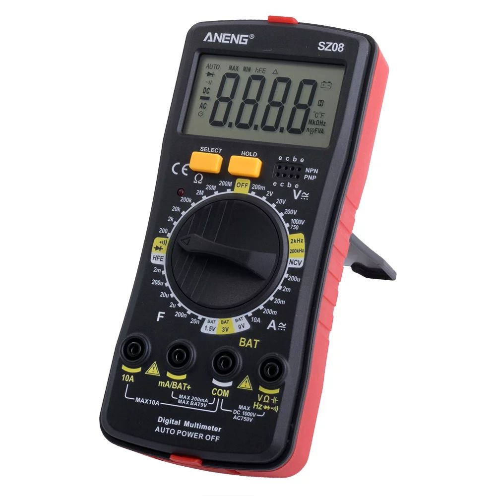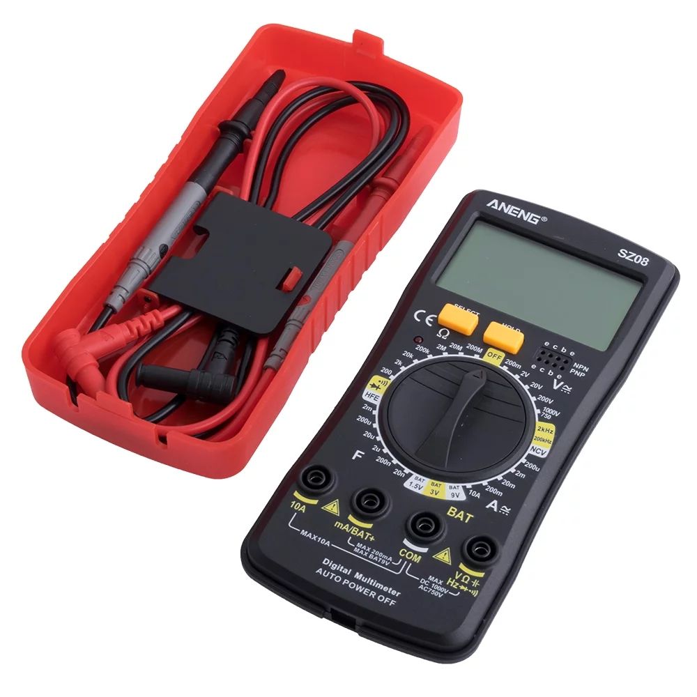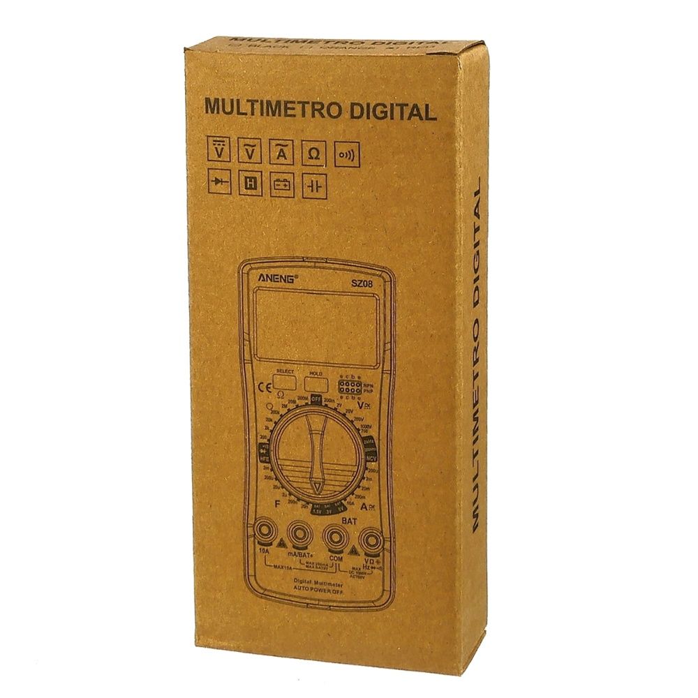 Мультиметр ANENG SZ08 — это многофункциональный цифровой прибор для измерения различных электрических параметров, таких как напряжение, ток, сопротивление, частота и ёмкость. Благодаря компактному дизайну, большому дисплею с подсветкой и удобству использования, он станет незаменимым инструментом как для профессионалов, так и для любителей электроники.