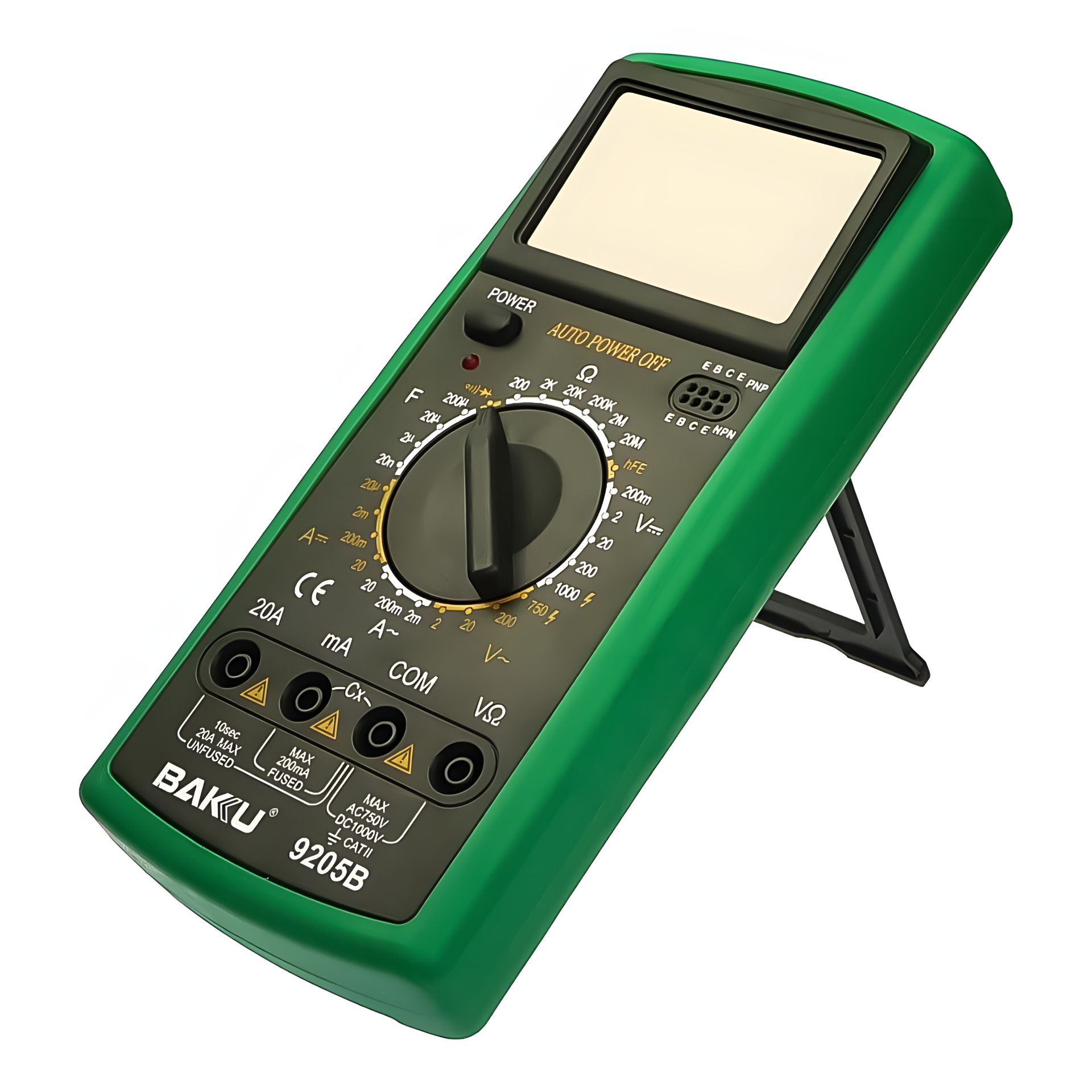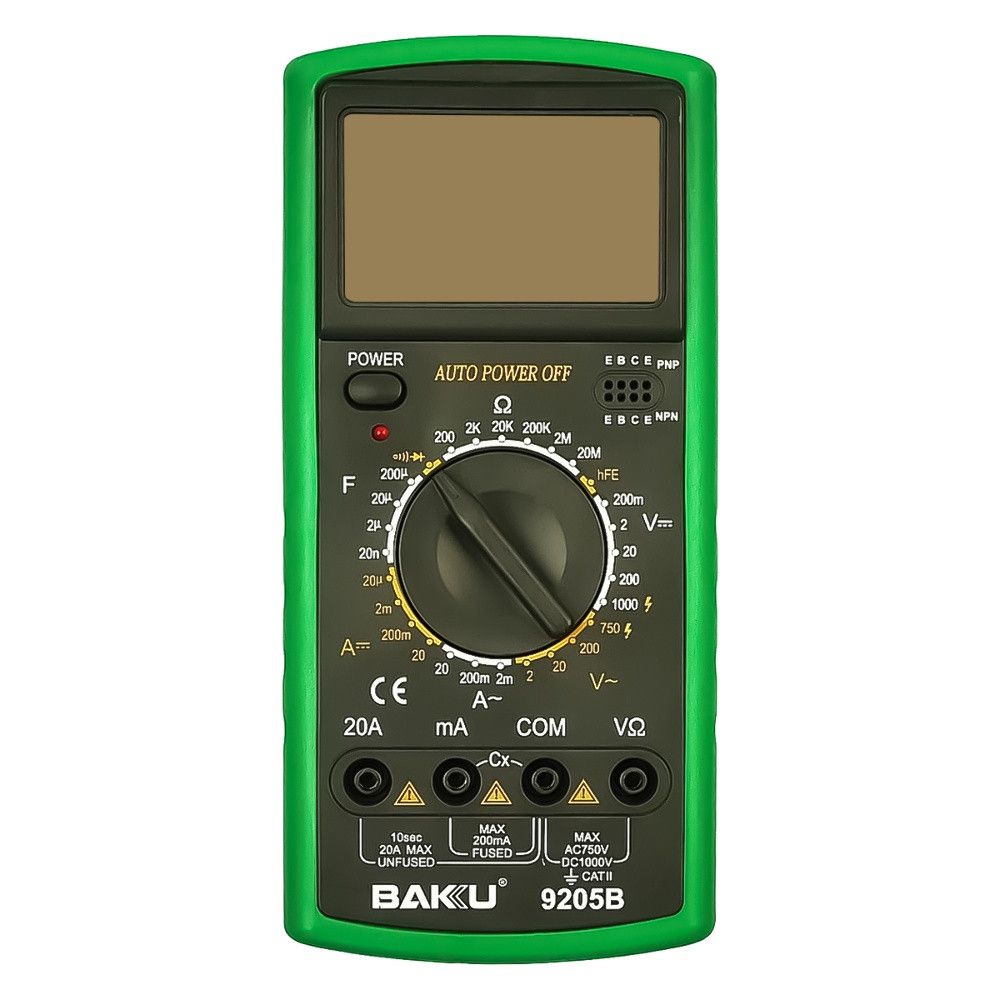 Мультиметр цифровой Baku BK-9205B с функцией автоотключения (ток до 20А) – универсальный цифровой мультиметр тестер тока, напряжения, сопротивления, емкости. Улучшенная версия мультиметра BAKU BK-9205A с увеличенным размером дисплея.