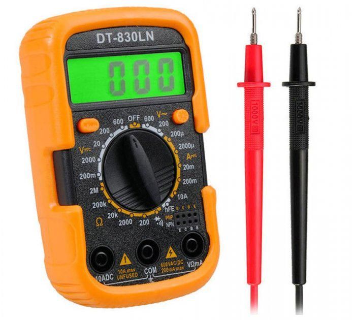 Мультиметр DT 830 LN ― это карманный прибор с подсветкой дисплея и защитным чехлом. DT 830 LN можно использовать в различных сферах и он станет просто незаменимым помощником для мастеров, монтеров и конечно же автослесарей. Да и в домашних условиях этот прибор очень пригодится. Подсветка дисплея позволит работать в затемненных местах, а пластиковый чехол ("калоша") защитит мультиметр от легких ударов.