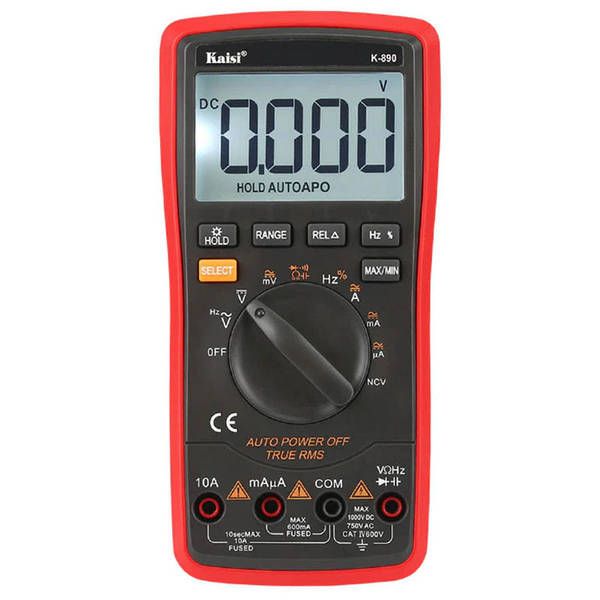 Мультиметр цифровой Kaisi K-890 с функцией Auto Off, подсветкой, автоопределением номинала измерения (ток до 10A) – высокоточный универсальный цифровой мультиметр тестер тока, напряжения, сопротивления, емкости с функцией автоматического определения номинала измеряемых величин.