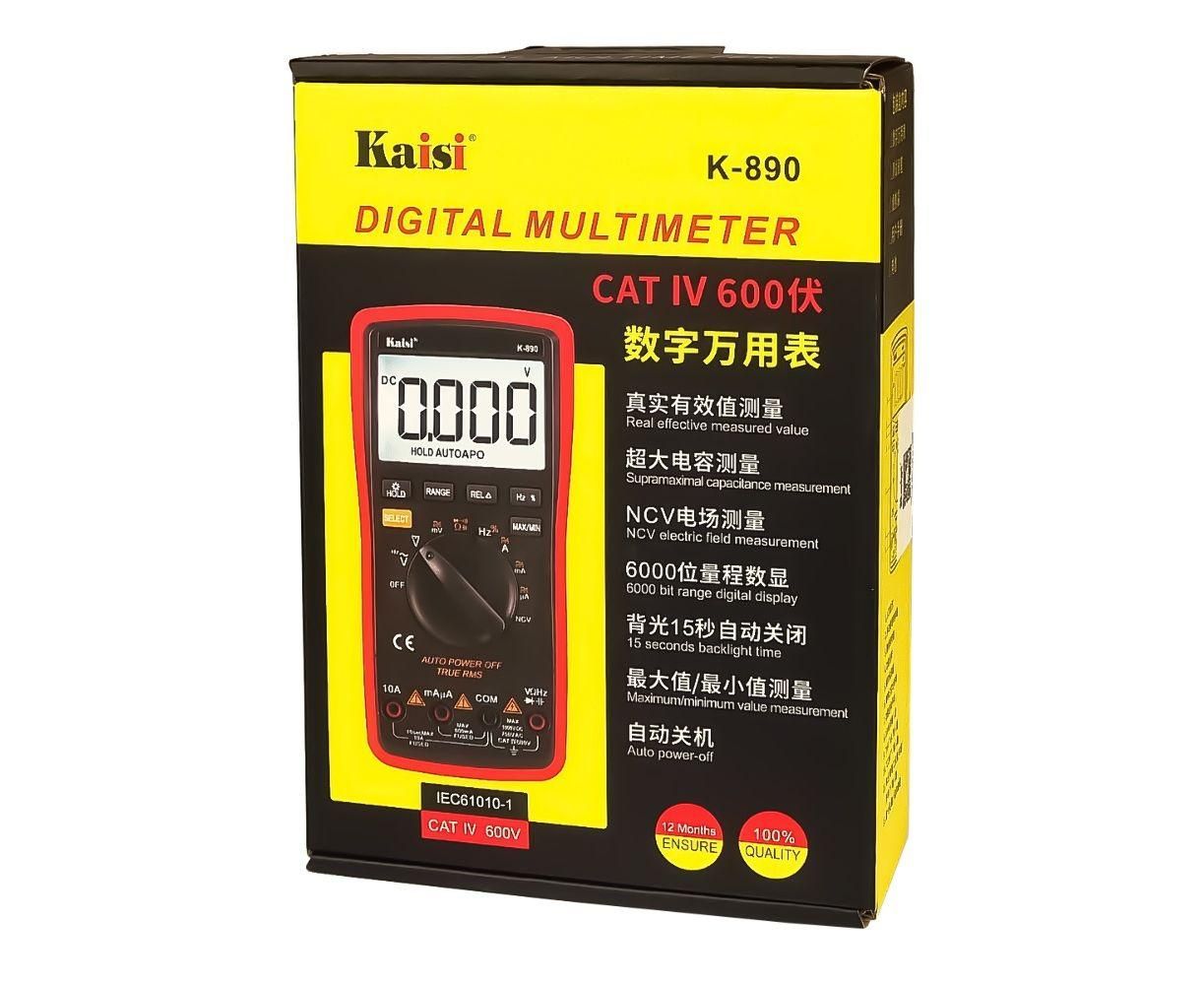 Цифровой мультиметр Kaisi K-890 с автоопределением и подсветкой (макс. ток 10A)