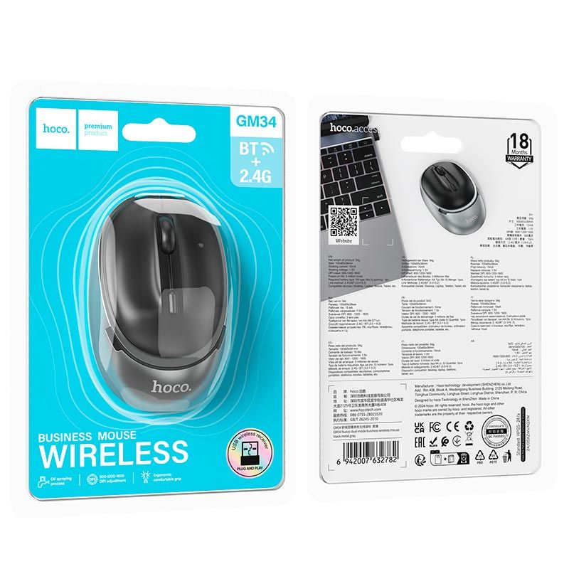 HOCO GM34 Nuevo двухрежимная беспроводная мышь для бизнеса |BT/2.4G, 800/1200/1600dpi| черно-серая