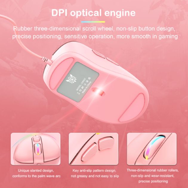 Геймерская мышь ONIKUMA CW907 RGB розовая