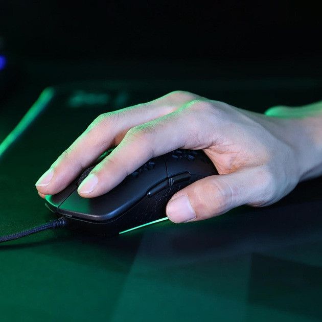 - Благодаря треугольным вентиляционным отверстиям мышь весит всего 99 г, благодаря чему идеально подходит для быстрой и точной реакции в динамичных играх.