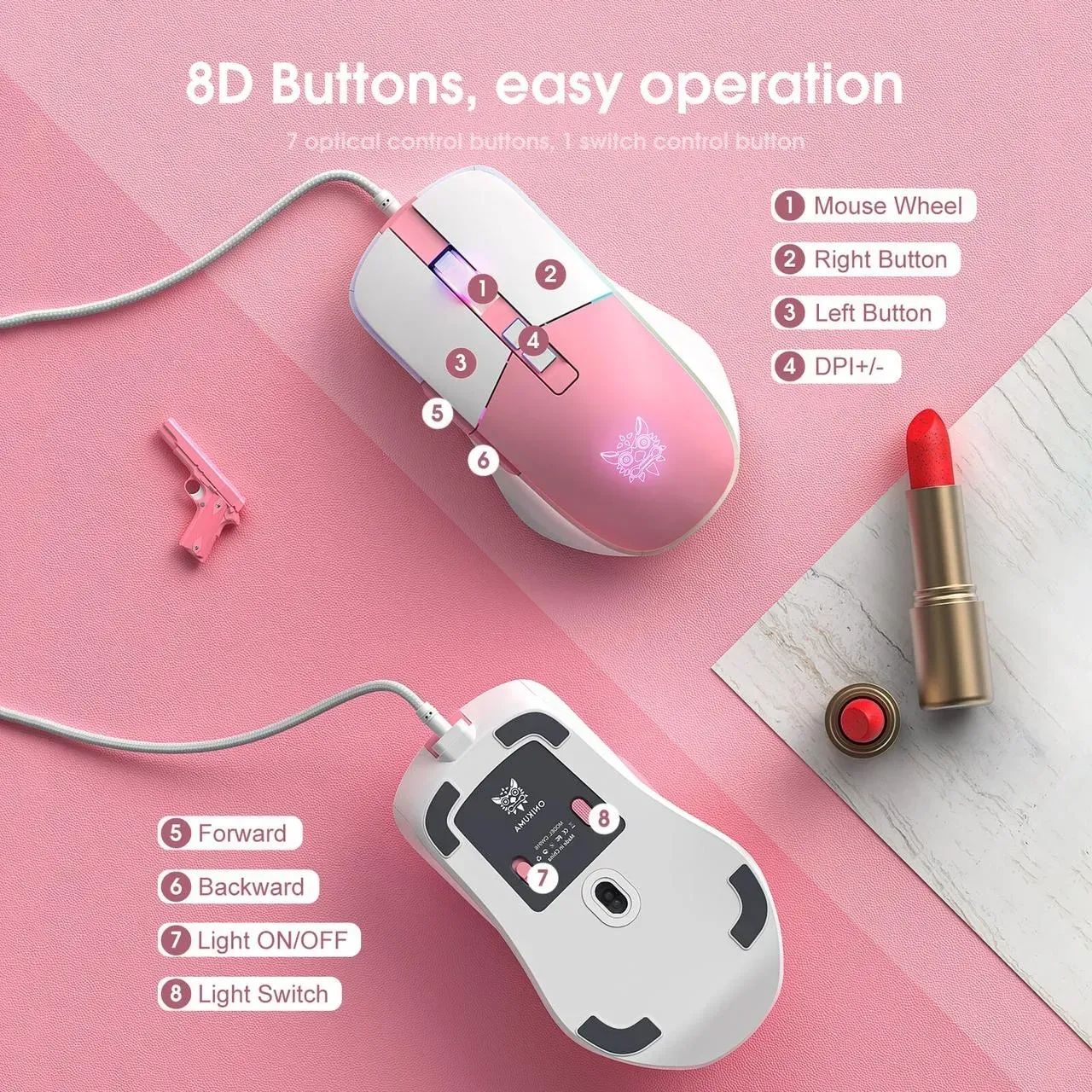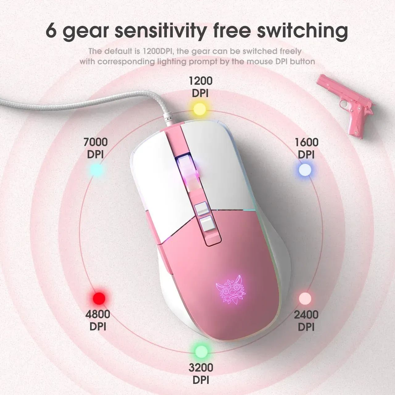 Геймерская мышь ONIKUMA CW916 бело-розовая