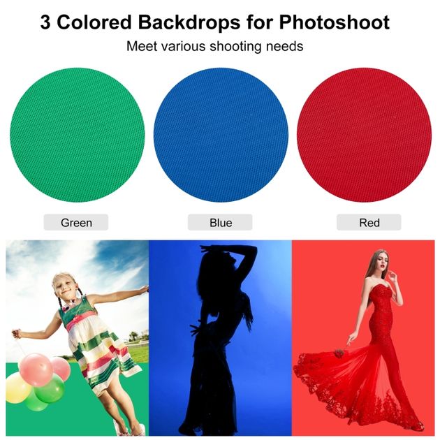 Тканевые фоны (красный, синий, зелёный) – 2,9×2 м (3 шт.)