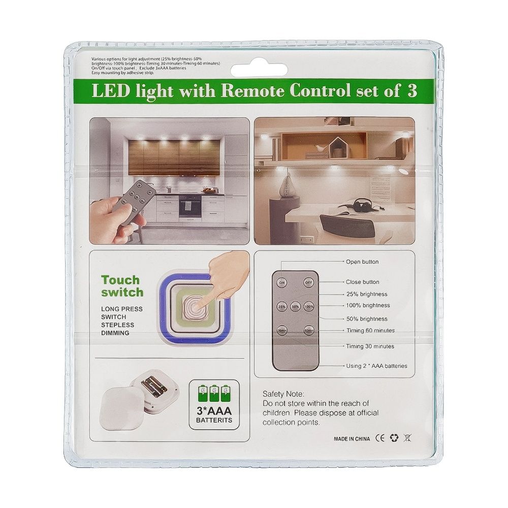 Мебельный светильник на батарейках, 3 шт.
