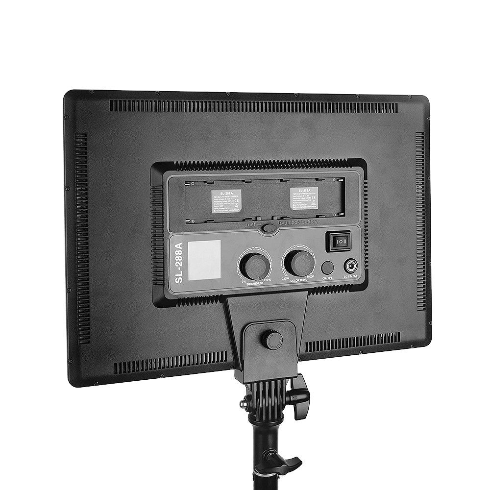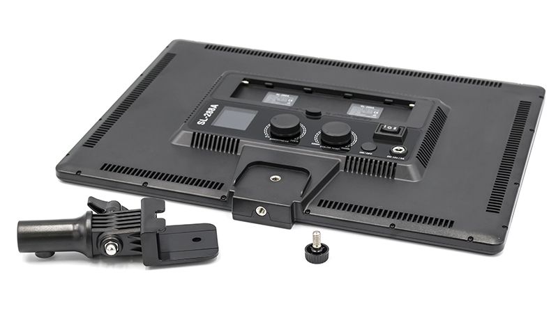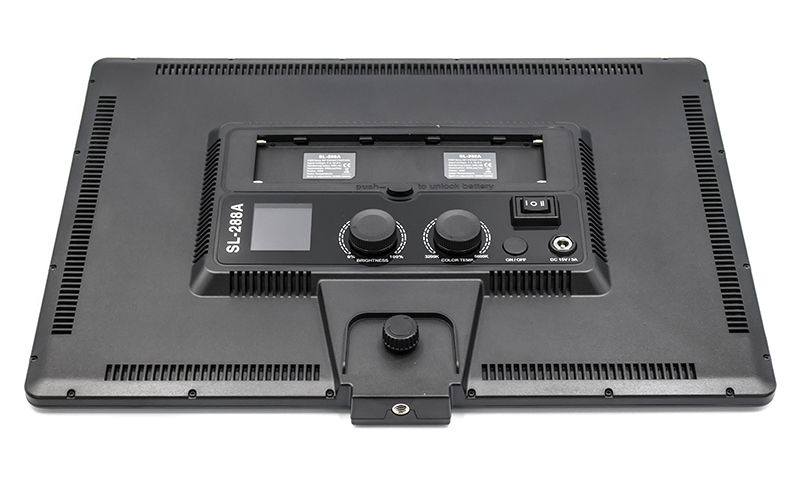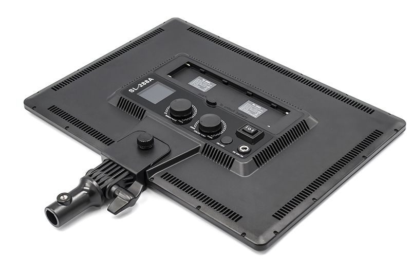 PowerPlant Soft Light SL-288A – это мощный накамерный свет, который позволит выполнять фото и видео-съемку профессионального качества. Может использоваться для записи как в студии, так и на выезде. Большая светоизлучающая площадь позволяет избавиться от резких теней и обеспечит равномерное освещение объекта. Данный свет оснащен качественными светодиодами с разной температурой света (144 шт. – 3200К и 144 шт. – 5600K). Для регулировки температуры света имеется плавный диммер на оборотной стороне корпуса. Там же находится и регулятор мощности света, позволяющий регулировать яркость света от 10 до 100%. На цифровом дисплее на задней панели устройства отображается вся необходимая информация о текущих настройках устройства и состоянии заряда аккумулятора. Свет питается от сети или от аккумуляторов типа Sony NP-F. Кронштейн для установки осветителя позволит установить его на любую студийную стойку. Осветитель в форме световой панели позволит создать очень интересный эффект при съемке видео и фото как в студии так и при выездной съемке.