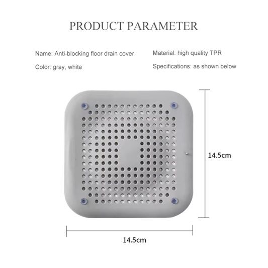 Силиконовая Решетка для Слива Ванны и Раковины с Присосками 145x145mm Серая