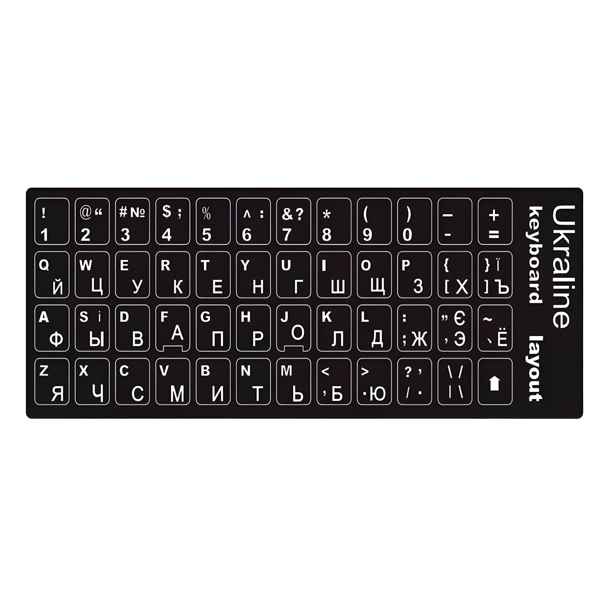 - Наклейки имеют английскую, украинскую и русскую раскладки, что удобно для пользователей, работающих с разными языками.