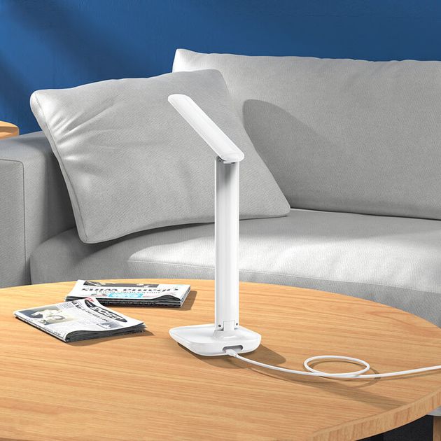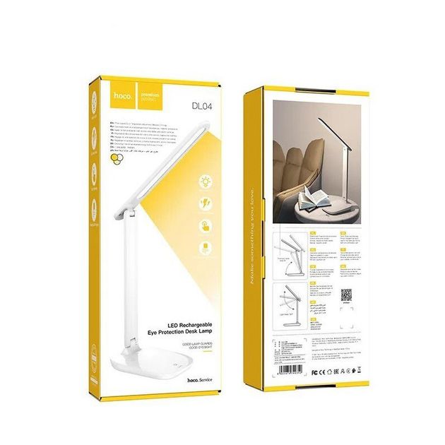 Настольная лампа Hoco DL04 состоит из платформы размером 120х162х25 мм, откидной ножки и панели, в которую встроены светодиоды. Ножка может наклоняться в диапазоне от 0 до 90 градусов, а панель до 180 градусов. Благодаря этому светильник можно идеально отрегулировать для письменной работы, чтения или других занятий за столом.