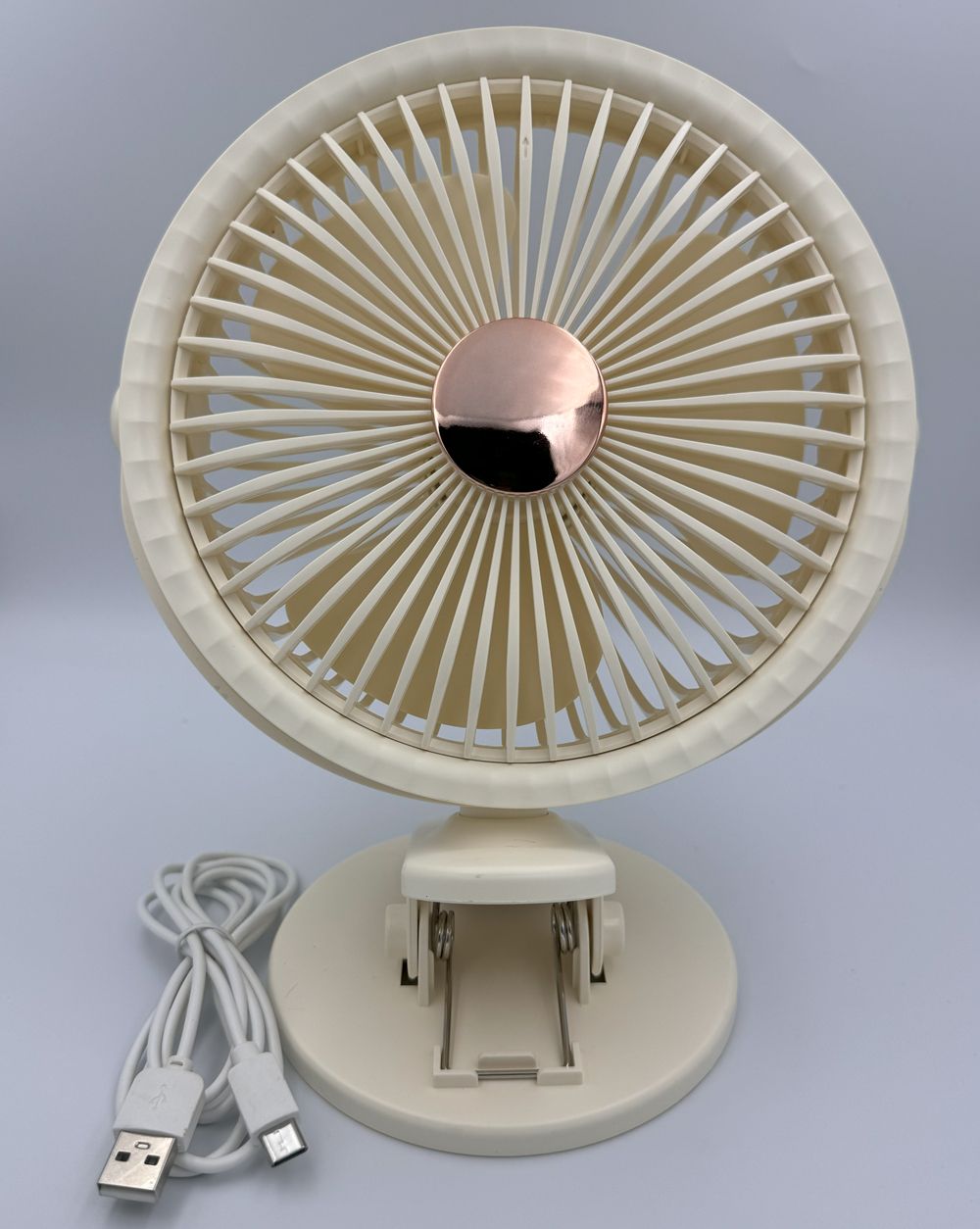 Настольный вентилятор DM-41C с питанием от повербанка и прищепкой (USB-Type-C, 2 скорости, d=16cm) beige