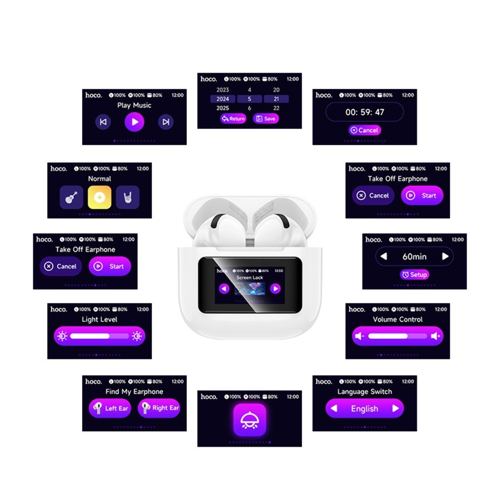 Беспроводные наушники HOCO EW73 — это современное решение для тех, кто ценит удобство, качественный звук и инновационные технологии. Благодаря сенсорному дисплею на зарядном кейсе и на самих наушниках, улучшенной версии Bluetooth 5.4 и высокому качеству передачи звука, эти наушники станут надежным спутником в повседневной жизни и во время активного отдыха.
