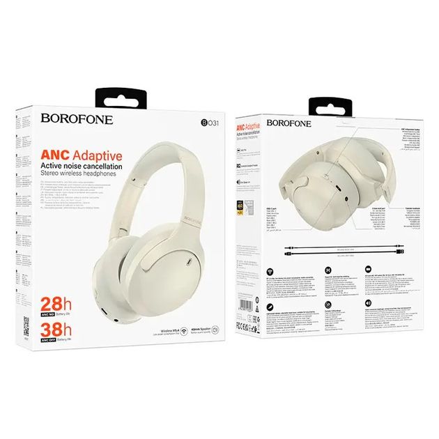 Наушники с шумоподавлением BOROFONE BO31 Prestige |BT5.4, ANC, AUX/BT, до 38 часов| Milky white