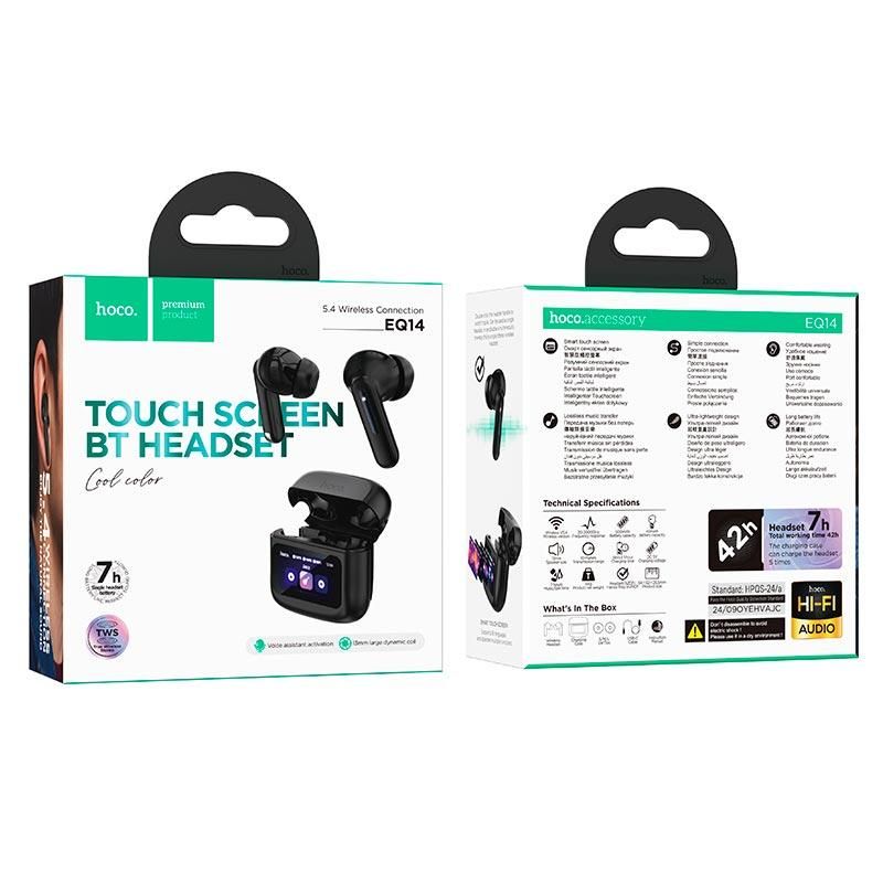 Наушники HOCO EQ14 Cool Color true wireless с сенсорным экраном |BT5.4, 40/500mAh, 7ч| черный