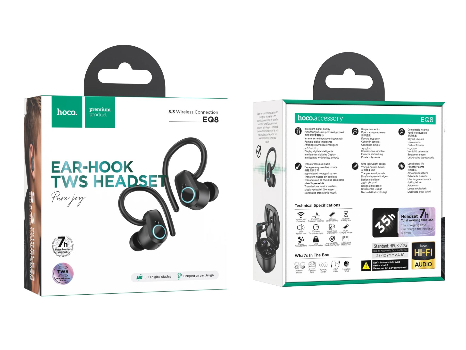 Hoco EQ8 Pure joy — это современные полностью беспроводные наушники (TWS), сочетающие в себе передовые технологии, комфортный дизайн и высокое качество звука. Благодаря продуманной конструкции и расширенным функциональным возможностям, модель станет отличным выбором для ежедневного использования — как дома, так и в дороге.