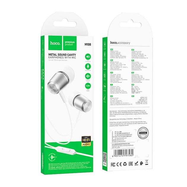 Универсальные наушники с микрофоном HOCO M108 Spring metal серебристые