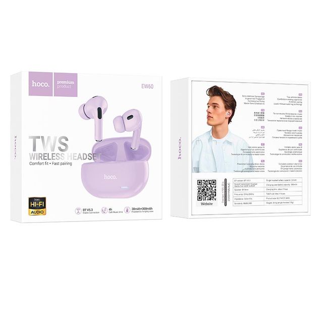 Наушники HOCO Norman wireless true BT headset EW60 |BT5.3, 30/300mAh, 4h| purple