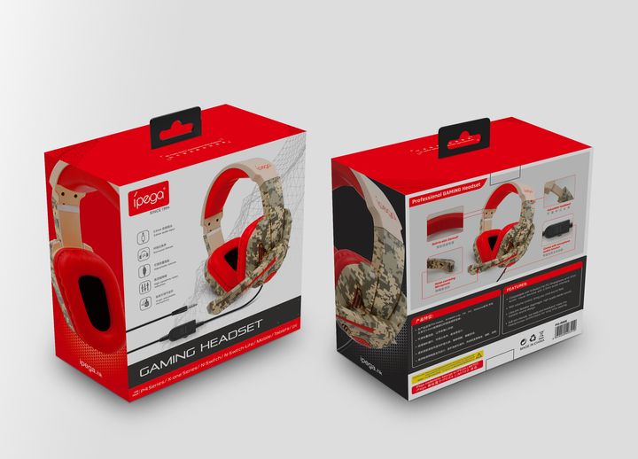 iPega PG-R005 Gaming Headphones |3.5mm, Noise Reduction| Camouflage-Red