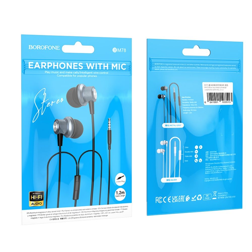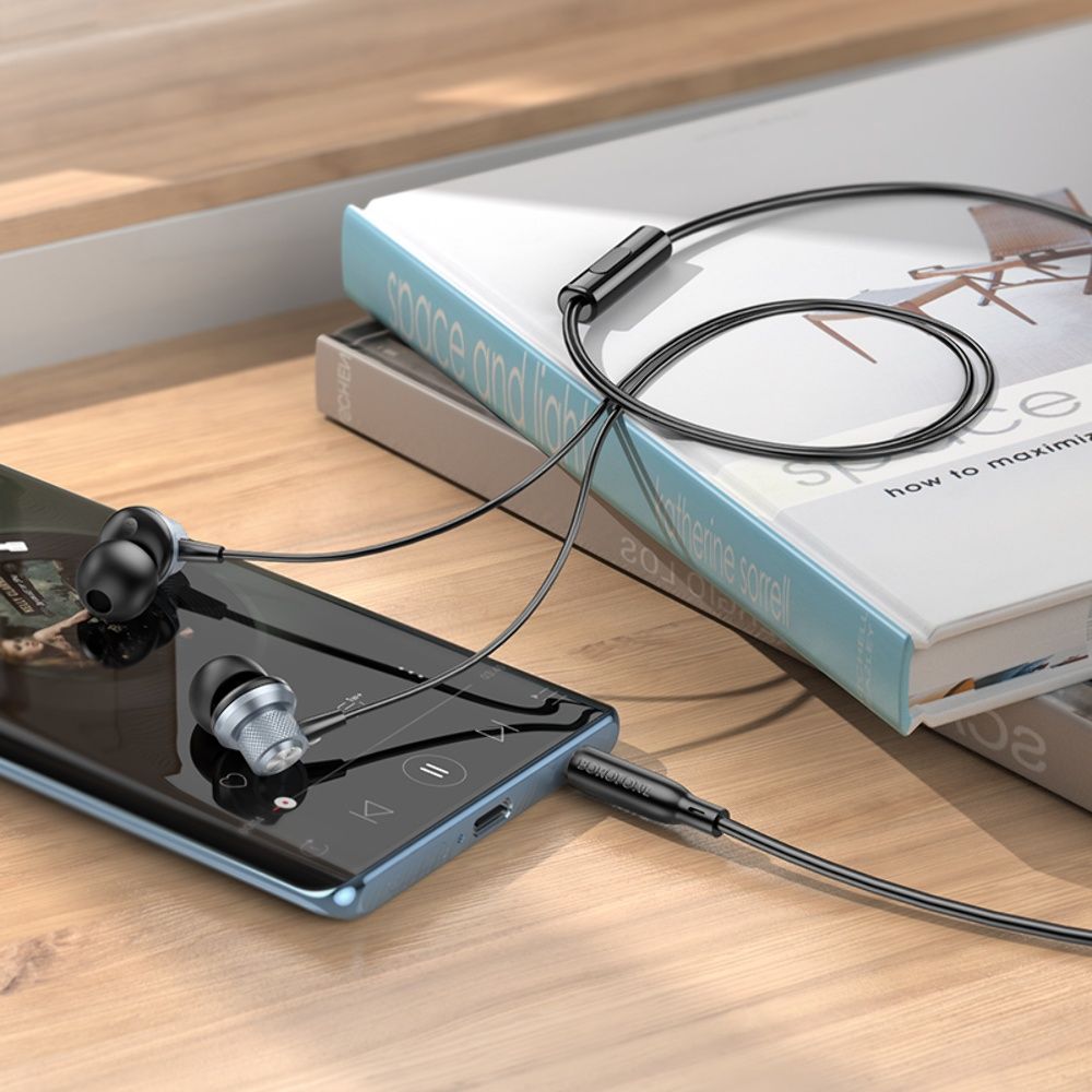 Вакуумные проводные наушники Borofone BM78 с микрофоном серые Jack 3.5
