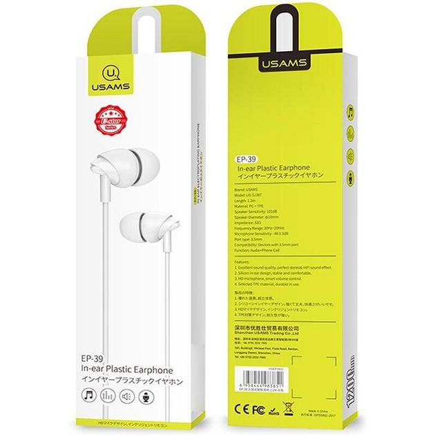USAMS In-ear Plastic EP-39 |white, 1.2m|