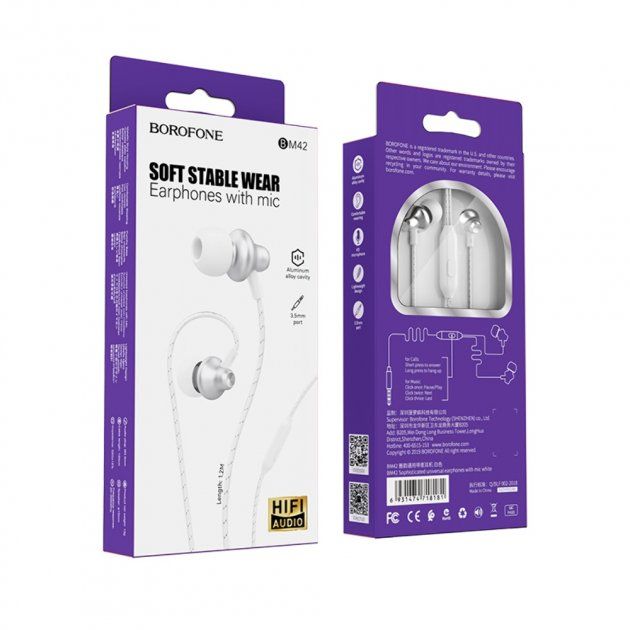 Наушники вакуумные Borofone BM42 белые в Киеве и Украине с быстрой доставкой Новой Почтой. Осмотр и оплата при получении или по предоплате, по Вашему желанию. Детали узнайте у нашего менеджера, обратившись по контактам продавца.