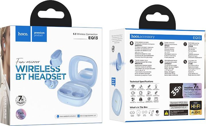 Наушники TWS HOCO EQ13 беспроводные |BT5.3, 40/400mAh, 7 часов, микрофон| синие