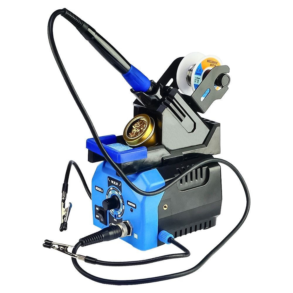 Паяльная станция WEP 936A-II – это компактная паяльная станция, оснащенная паяльником. Эта паяльная станция имеет широкий температурный диапазон, позволяющий работать с разными видами материалов. Характерной особенностью этой паяльной станции является быстрый нагрев до нужной температуры, а держатель плат и припоя обеспечивает комфорт при использовании. Может использоваться как профессионалами, так и любителями для пайки простых схем, поверхностного монтажа компонентов BGA и SMD.